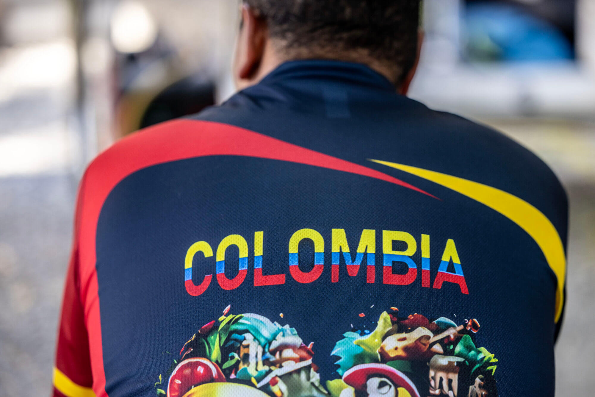A food vendor wears a shirt representing the country where he’s from, Colombia, during the Festival Hispano de Pascagoula at Beach Park in Pascagoula, Miss., on Saturday, Sept. 20, 2025. Credit: Eric Shelton/Mississippi Today
