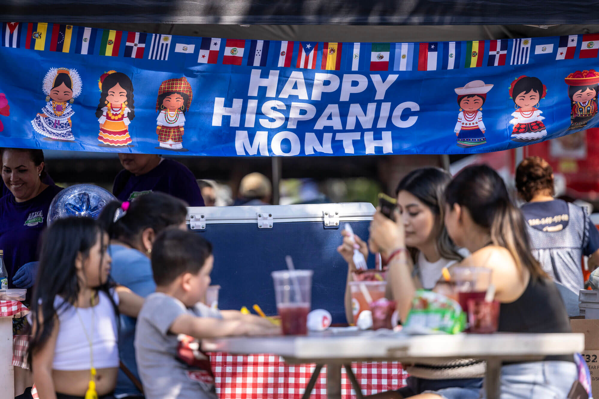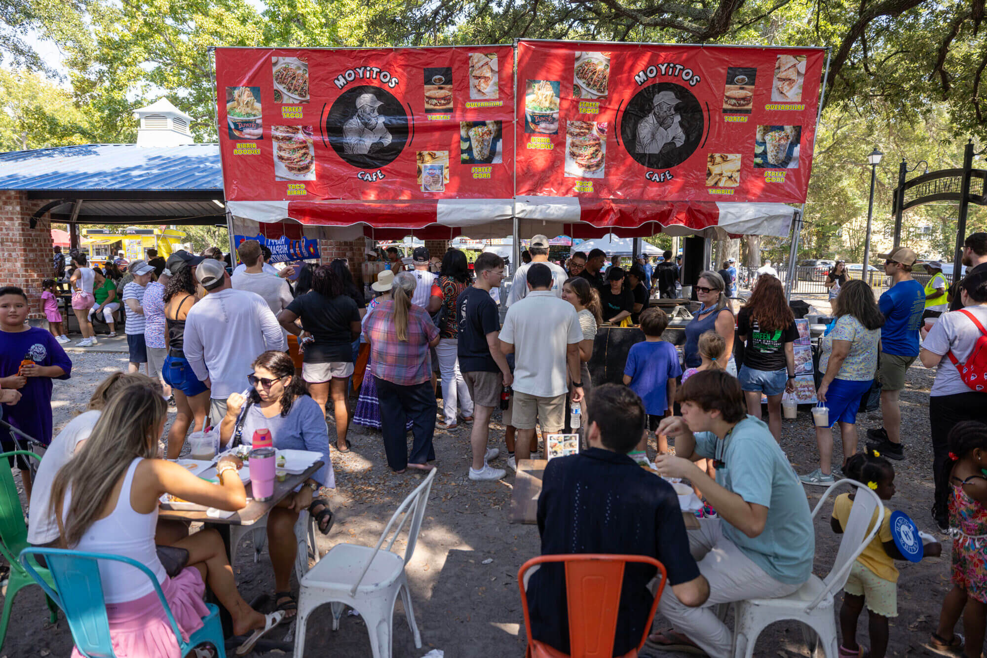 Event goers enjoy food and music during the Hispano de Pascagoula at Beach Park in Pascagoula, Miss., on Saturday, Sept. 20, 2025. Credit: Eric Shelton/Mississippi Today