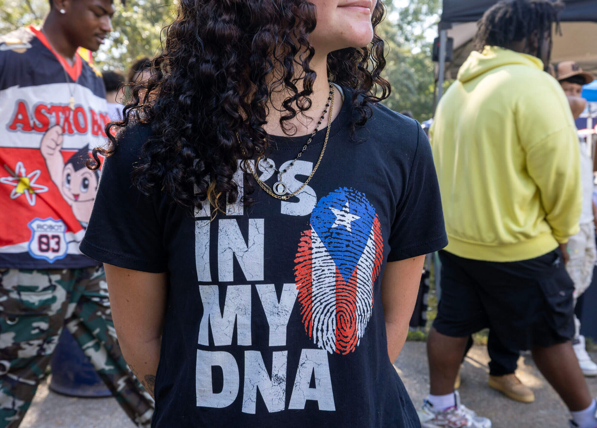 Adriana Lopez, 17, wears a Hispanic Heritage shirt during the Festival Hispano de Pascagoula at Beach Park in Pascagoula, Miss., on Saturday, Sept. 20, 2025. Credit: Eric Shelton/Mississippi Today