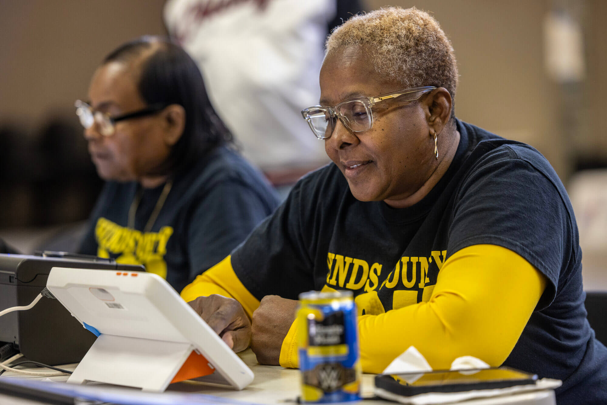 Johnson, wife of NAACP President Derrick Johnson, said she knocked on over 20,000 doors. Mumford said she’d gone out just about every day with a team of canvassers. When she went out to vote at her precinct, arriving at 6:54 a.m., she was the seventh person in line.