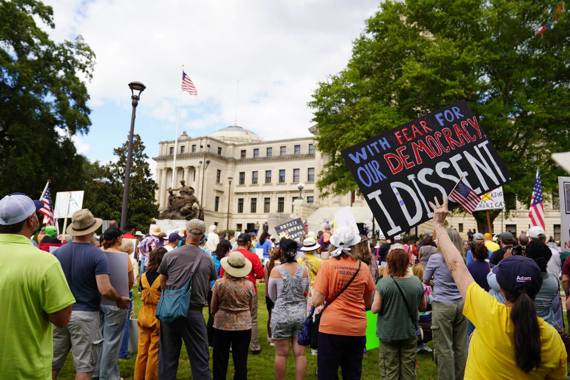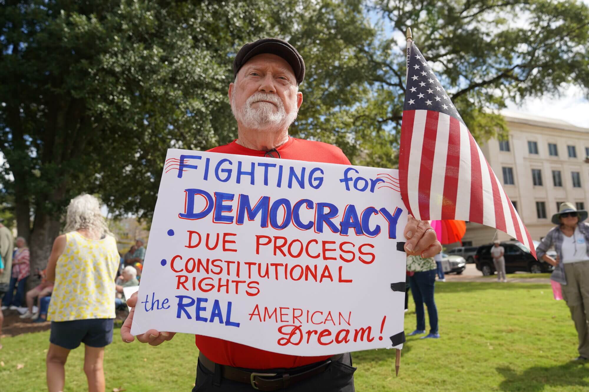 “We’re here, you know, fighting for our democracy,” Clinton resident M.D. Whitfield said at that rally. “We’re fighting for due process.”