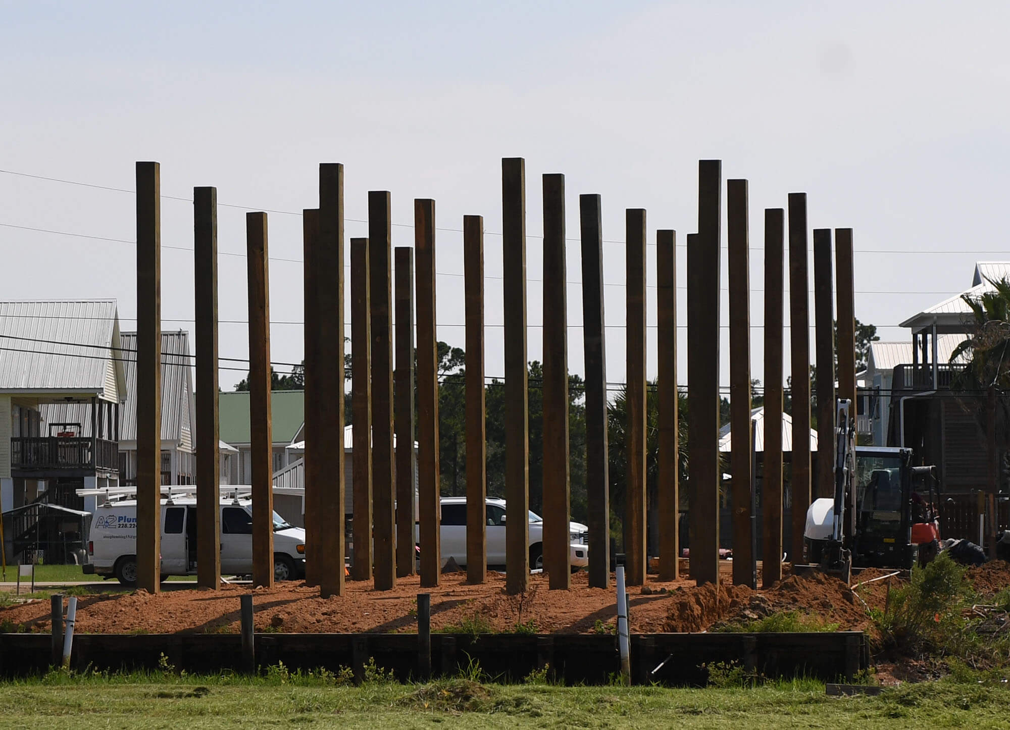 Pylons for new home construction in the Jourdan River area, west of the Bay of St. Louis, Monday, Aug. 18, 2025 in Bay St. Louis. Credit: Vickie D. King/Mississippi Today