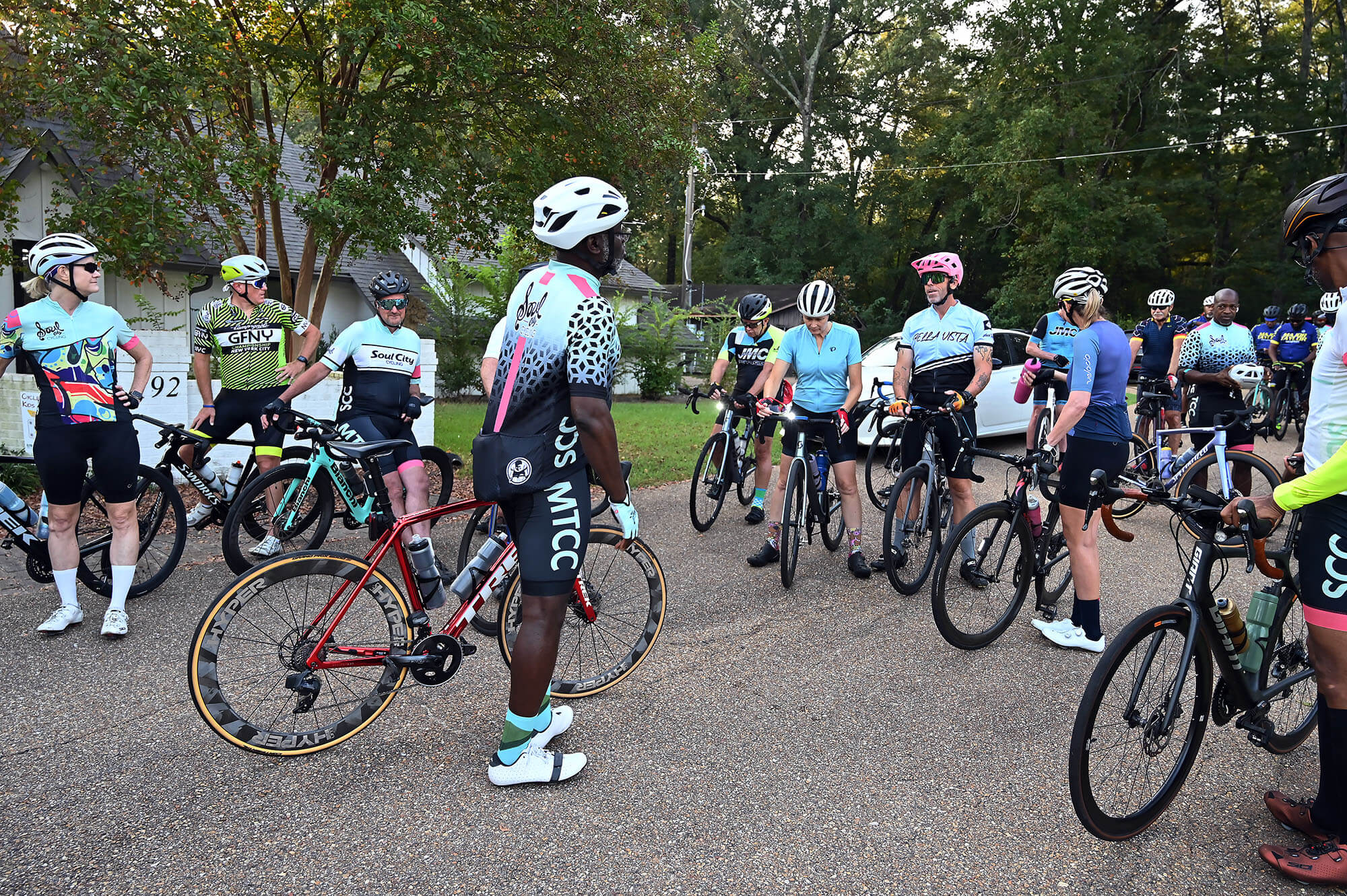 Before sunrise early Saturday morning in September, bicyclists from across the tri-county area, including Major Taylor Cycling Club members from Memphis, Tennessee, arrive at The Bike Crossing in Ridgeland.