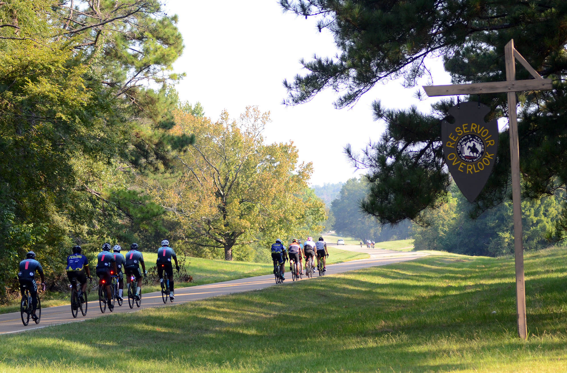 Soul City Cycling and Major Taylor Cycling Club members ride past the Overlook on the Natchez Trace in Madison County, Saturday, Sept. 20, 2025. Credit: Vickie D. King/Mississippi Today